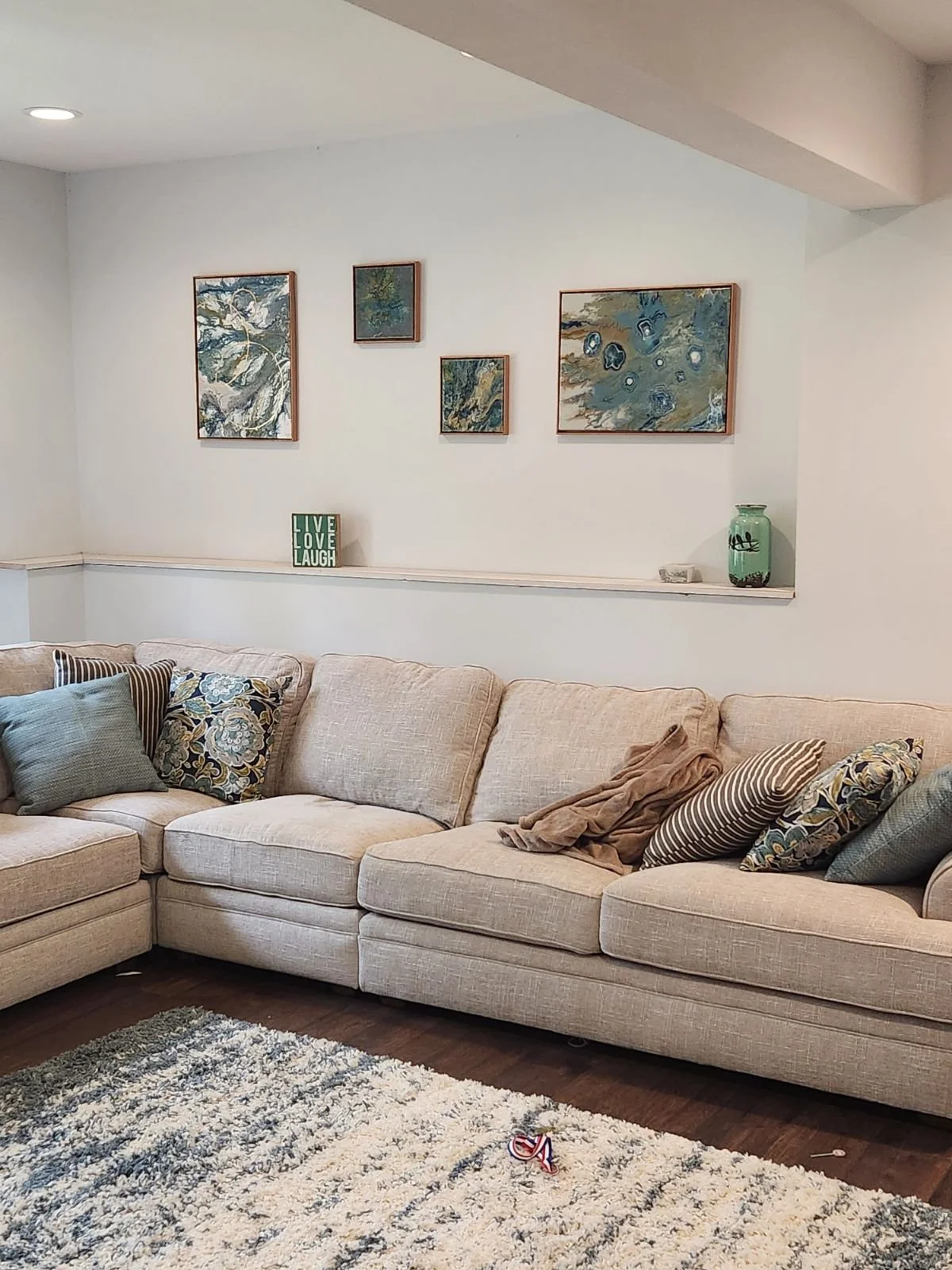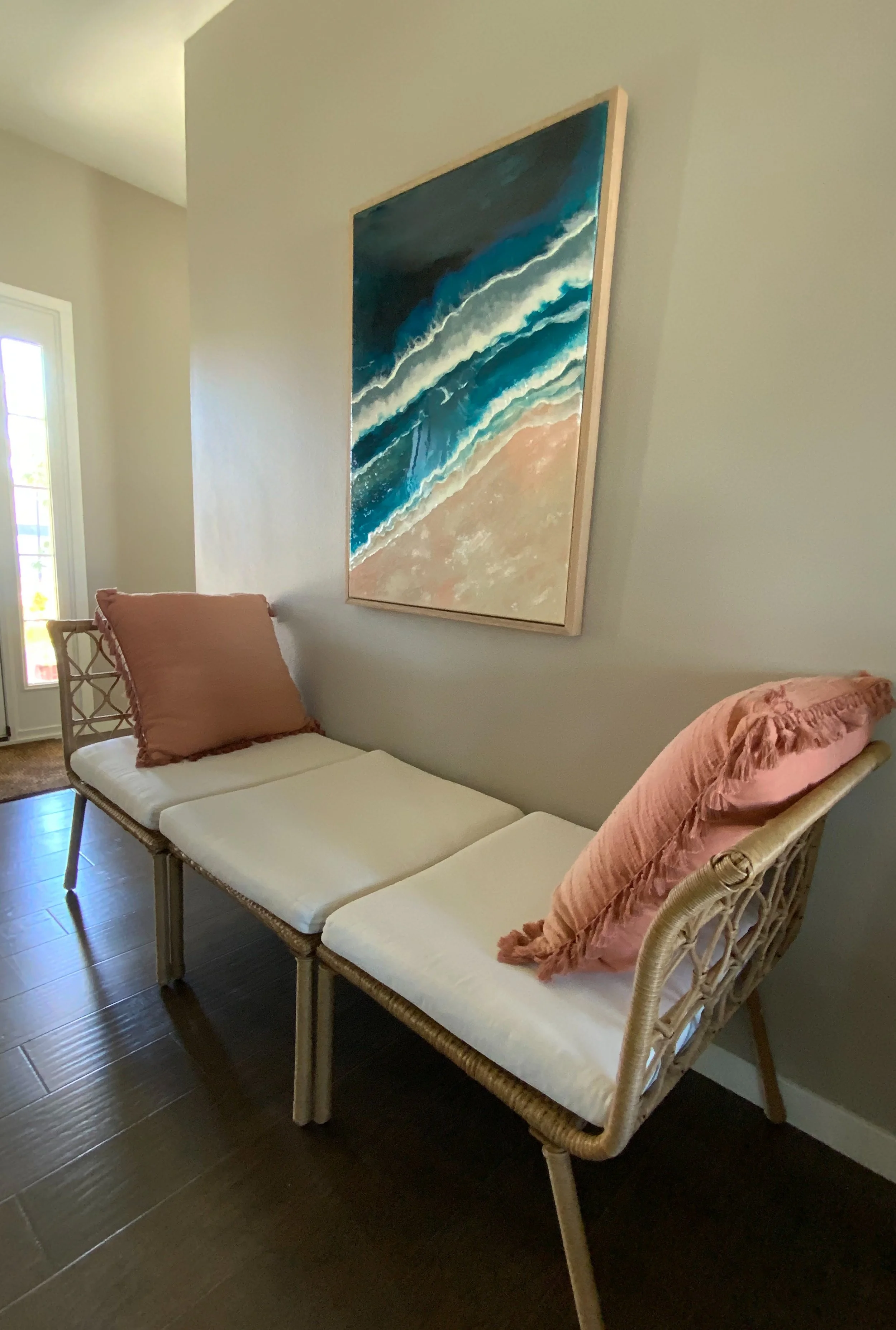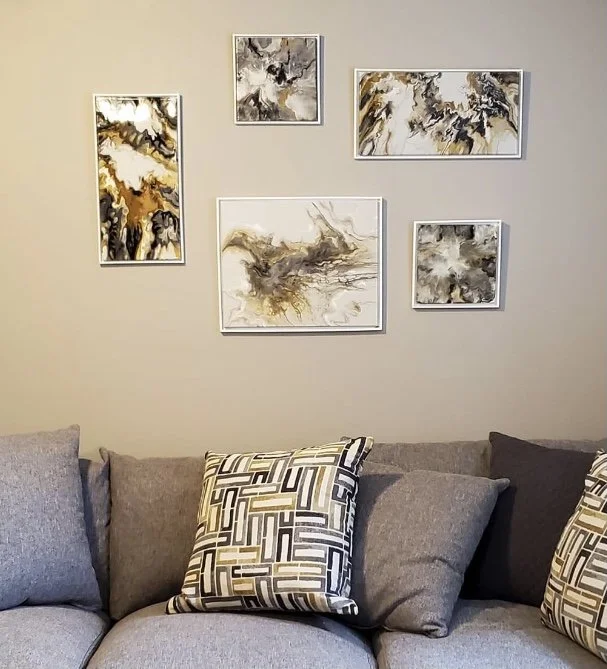 Custom color and framed acrylic pours created just for you to coordinate with decorative pillows, fabrics, or other decorative items. Consultations are free, and quotes provided upon request.
